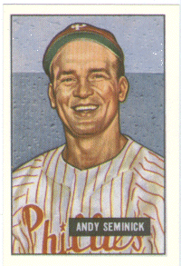 Some interesting trivia notes: Seminick was the first Phillies player to hit two home runs in one inning (1949) and shared the same birthday (September 12) with fellow Whiz Kids Stan Lopata and the late Bubba Church.