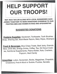 What a wonderful, yet, inexpensive but considerate way to SUPPORT OUR TROOPS with items we all have stashed away in our homes doing nothing more than taking up space.
