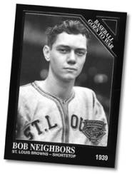 As mentioned, the 5-foot 11-inch 165-pound Neighbors failed to see any action with the Browns during his short stint with them in ’37, so he spent the 1938 and 1939 seasons back down in the bushes trying to earn a second chance. He hit a solid .301 with 18 homers and 75 RBIs at Palestine in the East Texas League in ’38, but no call-up. He followed that with a .269, 14 home run, 80 RBI campaign at Springfield in the Three-I League in 1939, and then it happened — the Brownies called him up again.