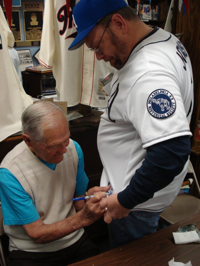 Joost, the 92-year-old former player and manager of the Philadelphia Athletics in 1954, the team’s last year in Philadelphia before moving to Kansas City, was in Hatboro at the Philadelphia Athletics Historical Society’s museum and gift shop Saturday, Jan. 17, to greet fans and sign a limited edition Heartland figure of himself.