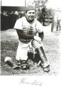 Herman’s big-league career as a catcher ran from 1939 to 1949, with the Cardinals, Dodgers, and Giants as well as the Athletics, broken up by military service in World War II. He later spent seven seasons as a manager with the Giants (1965-68) and the Cubs (1977-79) and ten years as a big-league coach. While with the Giants, he managed pitcher Masanori Murakami, the first Japanese player in the majors, to whom the Giants infielders offered to teach a few words of English. When Franks came to the mound to relieve him, Masanori proudly uttered the words taught to him, “Take a hike, Herman.”