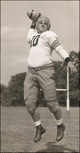 After playing college ball at Georgetown, he caught for the 1942 A’s batting .389 in 16 games. His career in professional football began in 1945-46 with the Eagles, 1947 with the Baltimore Colts (AAFC) and 1947-48 with the Washington Redskins.He was a back in those days which was a term used for offensive and defensive play at a time when players did both tasks.