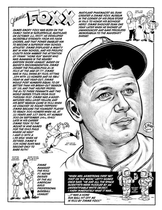Later Gomez would claim that astronauts had found a Jimmie Foxx home run ball on the moon. Jimmie’s generosity and gentlemanly demeanor make Foxx popular among fans and players alike. Comedian Red Foxx adopts Jimmie’s last name.