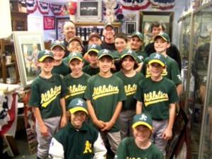 On Saturday May 8, 2010, the A’s team from Tri-Township Baseball in Wrightstown PA visited the Philadelphia Athletics Historical Society. The A’s team play in the 11-12 Majors division. The teams head coach is Ron Clearfield. The teams assistants are Tom Casey, Steve Pearlman and Barry Shapiro.