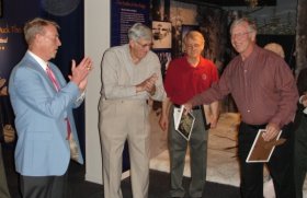 The party was held Saturday, April 19 at the Pennsylvania Veterans Museum in Media, PA (www.paveteransmuseum.org) to a packed house of Vernon fans that included Phillies favorite Harry Kalas who told the story of how he became a huge Vernon fan in Chicago in 1946 when as an 8 year old boy Vernon lifted him from his seat in the grandstands and took him personally into the Senators dugout. Quite a thrill for a youngster during Vernon AL Batting championship year. The event was jointly sponsored by the Veterans Museum and the Delaware County Sports Hall of Fame.
