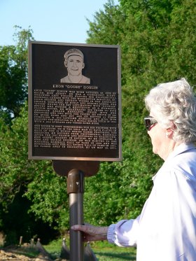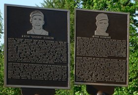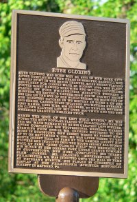 Two separate bronze, laser-engraved plaques providing a physical image and narrative of each one’s baseball highlights were dedicated and available to view. Rube Oldring, Jr. the senior’s son and Mary Goslin, sister-in-law of the late hall of famer, were present to assist with the ceremony.