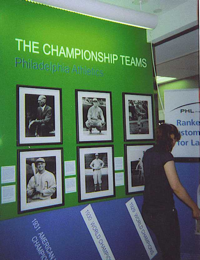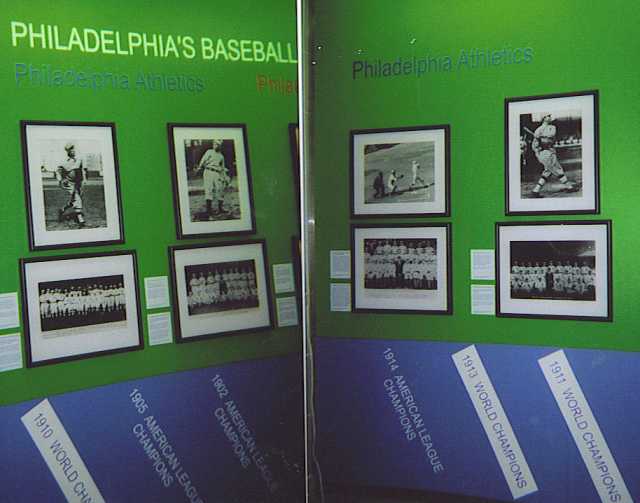 Three panels of A’s photographs (furnished by the Society) were featured along with photos of the Phillies championship teams and champions from the old Negro leagues. The exhibition will be up through the fall.