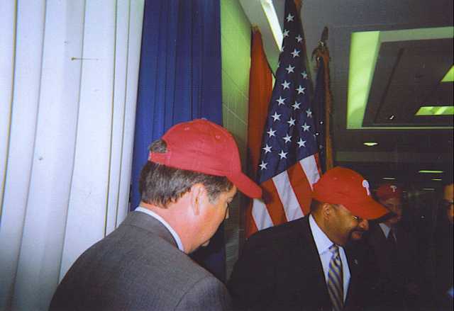 On July 3, Chairman Dave Jordan represented the Philadelphia Athletics Historical Society at the unveiling of a new photographic exhibition at the Philadelphia International Airport, entitled “Philadelphia’s Baseball Legends: The Championship Teams,” part of the city’s Welcome America celebration. Mayor Michael Nutter, Scott Palmer, the Phillie Phanatic, and a couple of Phillies ballgirls participated in the event as well.
