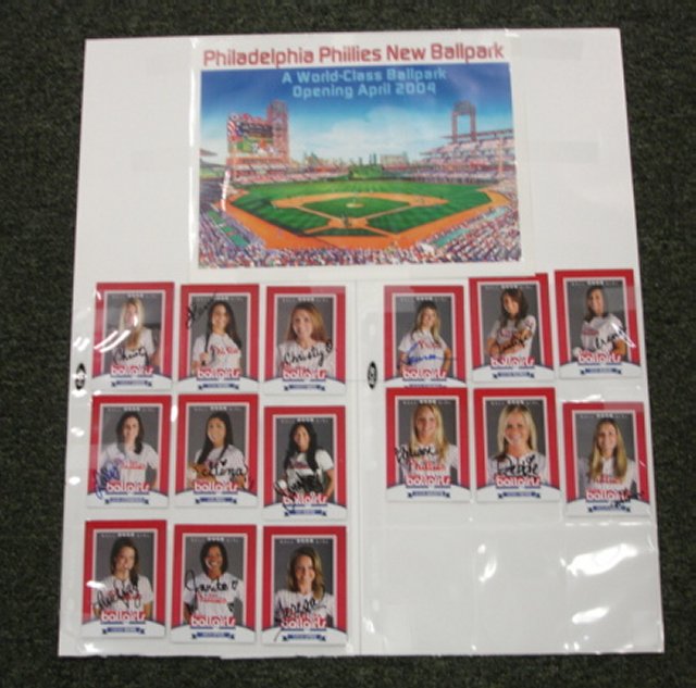 Phillies Ball Girls Autographed baseball cards are on display in the Society’s Museum: