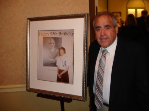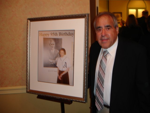 Carl Goldberg of the A’s Society admires the special photo he had framed for Ruth’s 95 birthday celebration. All of the attendees signed the photo for Ruth as a remembrance of her special day.