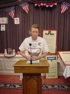 The A’s Society was represented by chairman Dave Jordan, his wife Jean, and Commissioner Carl Goldberg at a gala birthday party on March 21 for Ruth Mack Clark, Connie Mack’s only surviving child. The party at Williamson’s Restaurant in Horsham celebrated Ruth’s 95th and was arranged by her daughter Alice Cunningham. Forty guests, most of them family members from as many as three generations of Mack descendants, were happy to honor Ruth, to savor a fine luncheon, to talk about old times, and to enjoy a musical program afterwards.