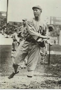 The young pitcher had impressed Connie Mack so much that he felt his right-hander was second only to Christy Matthewson in pitching speed. He earned the nickname “Bullet Joe”. In 1914 Joe tied Chief Bender with 17 wins for Philadelphia and again led the A’s to the World Series. Joe, however, became a victim of the Boston “Miracle Braves”, losing Game 3 of the Series 5-4 in the Braves embarrassing 4-0 sweep. Especially painful was the fact that it was Joe’s wild throw to Home Run Baker at third that lost the game for the A’s. It was only the beginning of a long nightmare. In 1915 Joe passed on an opportunity to make more money in the new Federal League. He was rewarded for his loyalty with a plunge to the American League cellar as the mighty Philadelphia Athletics made a metamorphosis into the worst team in baseball, and the very worst had just begun.