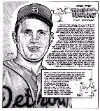1946 saw Trucks pick right up where he had left off before the war as he won 14 ballgames. He won 10 in ’47 and 14 in ’48 before hitting it big with 19 wins in 1949. In 1950 Trucks faced the first real adversity of his career when he came up with a sore arm and missed most of the season. He showed no ill effects in 1951 when he came back with 13 wins. It was that year that Trucks had a front row seat to baseball history at Sportsman’s Park in St. Louis. “I was on the bench when we played the Browns in the game where Gaedel pinch hit,” recounted Trucks. “We just thought it was another one of Veeck’s playthings — nobody thought he was going to get into the batter’s box and hit! Gaedel came walking up swinging four little souvenir bats — the kind they give away at the ballgame. When he finally stepped into the batter’s box, our manager, Red Rolfe, called time and went up to the umpire and said, ‘You can’t put that guy in to hit.’ That’s when Zack Taylor, the Browns manager, pulled out a contract signed by Will Harridge, President of the American League. So Gaedel stepped back in the box. Our pitcher, Bob Cain, later told me that Eddie said, ‘Just get the ball over — I’m gonna murder it!’ Cain threw four straight pitches that would have been strikes on anybody else, but they were too high for Gaedel. So he went to first and they put in a runner for him, and that was the end of his career.”